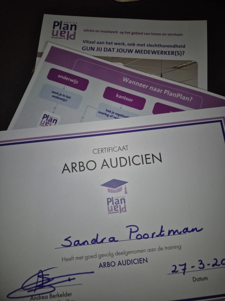 Sinds afgelopen week mag ik mijzelf Arbo-audicien noemen;